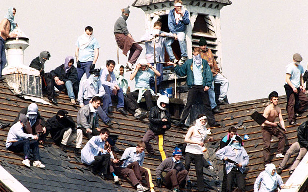 Programme Name: Strangeways – Britain’s Toughest Prison Riot – TX: 01/04/2015 – Episode: Strangeways – Britain’s Toughest Prison Riot (No. n/a) – Picture Shows: April 1990. Riot at Strangeways prison, Manchester – “prisoners on the prison roof” – (C) Rex – Photographer: Unknown